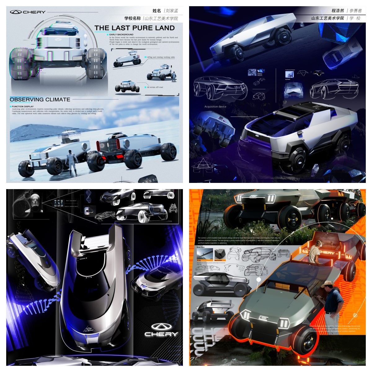 “2023奇瑞集团奇智未来汽车设计大赛”是面向国内及海外设计机构、高等院校公开征集、选拔优秀青年汽车创意设计作品的专业赛事。本届赛事以“奇智未来”为主题,引导青年设计师从汽车电动化、智能化、万物互联等角度出发,进行未来汽车应用场景设计。此次汽车设计竞赛吸引国内外50多所院校参与,大赛组委会评选9件作品进入复赛,入围选手需制作硬质模型参加决赛评审。