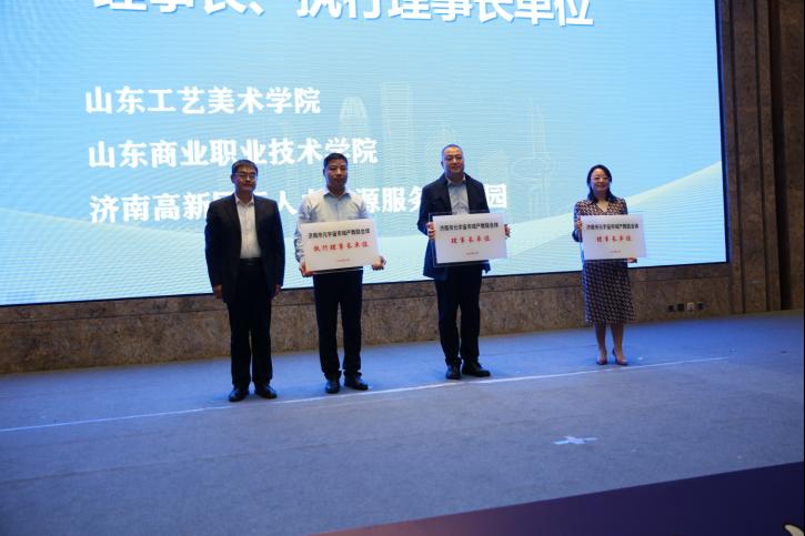 济南市教育局总督学林钟同志为理事长单位威尼斯7798cc、山东商业职业技术学院授牌,为执行理事长单位济南高新国际人力资源服务产业园授牌。