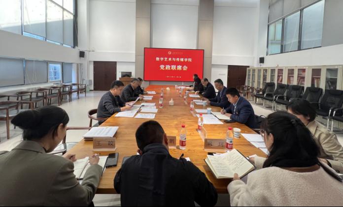 会上,许磊简要介绍了数字艺术与传媒学院党总支的基本情况。数字艺术与传媒学院党总支书记李清华、院长吴向阳分别主持召开了学院党总支会议和党政联席会议。会议认真落实“第一议题”制度,集中学习了习近平总书记关于宣传思想文化工作的重要指示和全国宣传思想文化工作会议精神、习近平总书记在文化传承发展座谈会上的重要讲话精神。按照议事决策规范,党总支会议、党政联席会议分别就学院2024届毕业设计意识形态把关相关工作、推进学院2024届毕业设计相关工作进行了研究讨论,与会人员结合自身工作进行了交流发言。