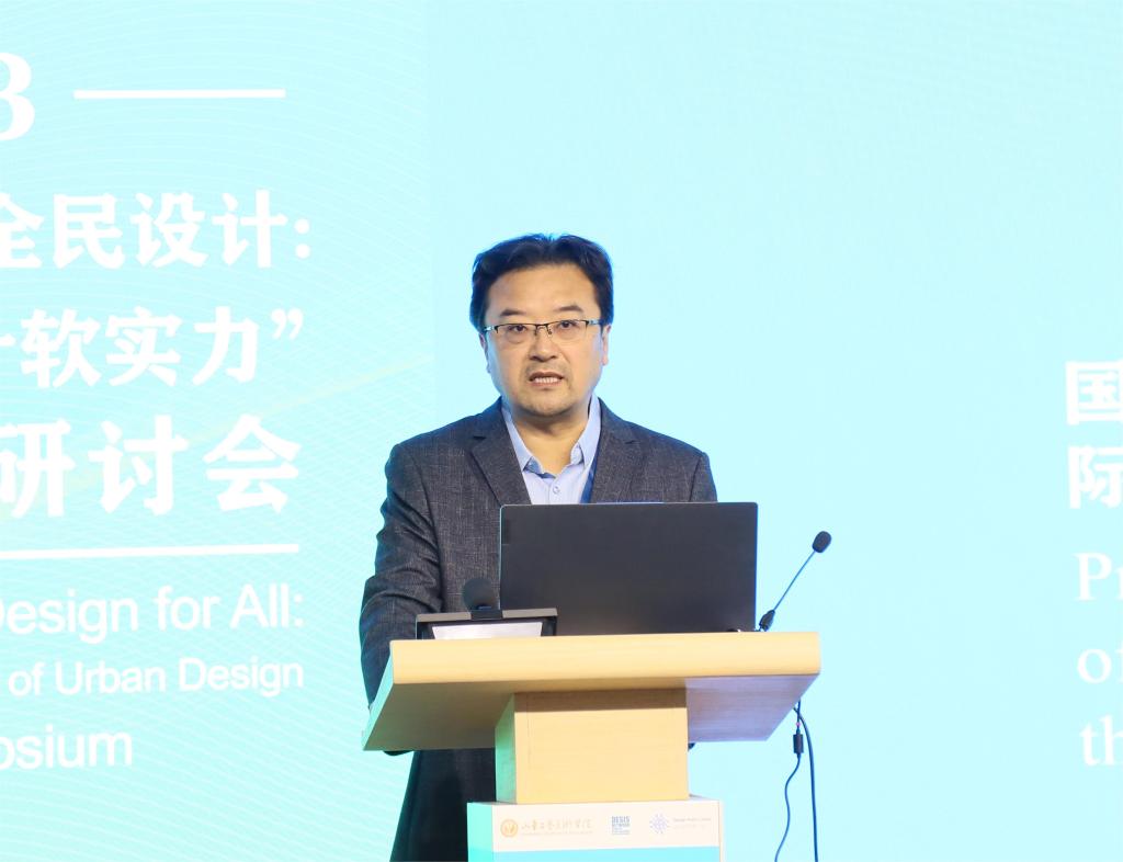 孙磊代表本次国际学术研讨会组委会致辞。他指出,本次学术研讨会以“人民城市与全民设计:凝聚城市设计软实力”为主题,倡导把“属民”“为民”“靠民”的人民城市重要理念贯穿到城市发展的全过程各方面,实现人人有序参与、人人共创共享、人人品质生活、人人归属认同的中国特色城市发展目标。通过传递“让每个城市人成为设计决策的主体”的价值观,实现城市更新和城市生活质量改善,助力构建人民城市发展新格局。期待本次国际学术研讨会能够为设计与城市研究提供新的资源和养料,为学界学人带来新的机遇和视野。