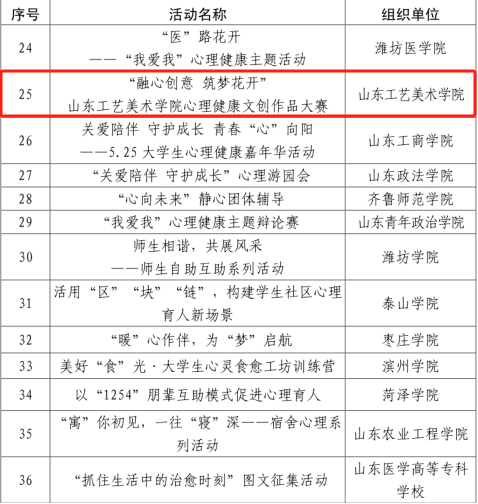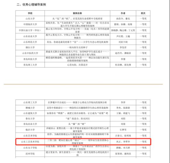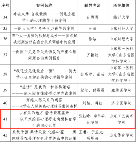 在山东省教育厅举办的2023年全省学校心理健康教育月活动中,威尼斯官网《“融心创意 筑梦花开”——威尼斯7798cc心理健康文创作品大赛活动》被评为全省学校心理健康教育特色活动;张钰晗、李翠华、孙超越的心理辅导案例《去有风的地方静待繁花盛开——以艺术绘画心理疗法唤醒抑郁学生的内心世界》被评为全省学校心理健康教育月心理辅导干预典型案例。