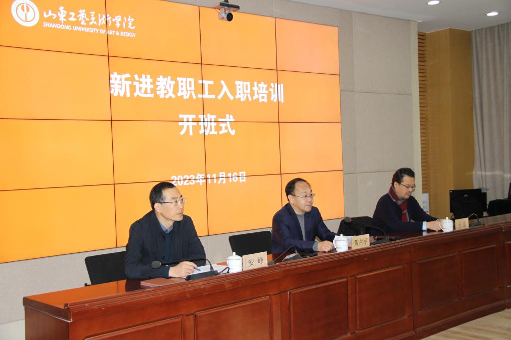 11月16日,学校在长清校区第一会议室举办新进教职工入职培训。院长董占军,党委委员、宣传部(教师工作部)部长、科研处处长孙磊出席开班式。党委委员、统战部部长、人事处处长安峰主持开班式。