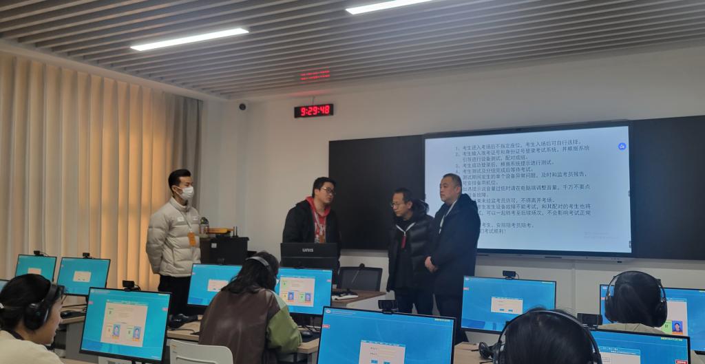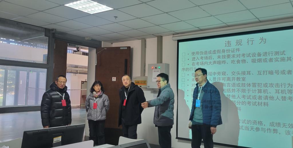 考试过程中,副院长孙大刚对考场进行了全面巡视和指导,对考务组织情况、考场秩序以及视频监控指挥中心和试卷保管室进行了实地检查,详细了解了考试组织等工作。在候考室,他和考生亲切交谈,了解备考情况;在考场内,他查看整个考场秩序,了解服务器运行情况,强调要结合国家考试有关要求,严肃考风、加大宣传、从严监考,杜绝各种违规和作弊情况发生。