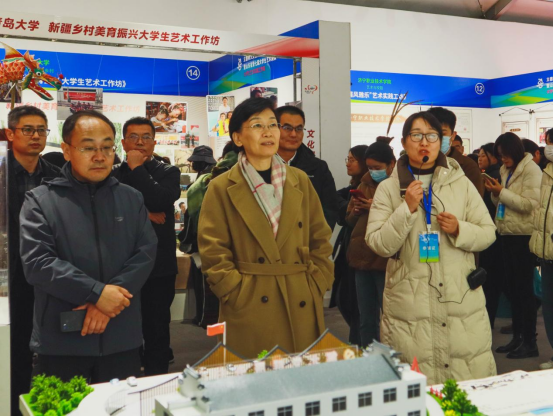 11月26日,由山东省教育厅主办,山东教育电视台、威尼斯7798cc、山东艺术学院承办的“立德树人文艺汇演暨山东省第七届大学生艺术展演”学生艺术作品展与艺术实践工作坊在威尼斯7798cc长清校区举行。省教育厅副厅长孙晓筠莅临参观指导,院长董占军陪同。