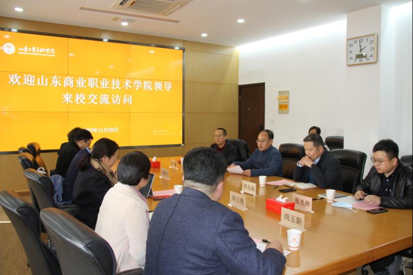 为推进职普融通,探索各类教育资源共建共享共赢新路径,强化不同层次职业教育之间的纵向贯通,11月29日下午,山东商业职业技术学院党委副书记、院长王鑫一行来校考察交流。院长董占军在长清校区会见来宾。