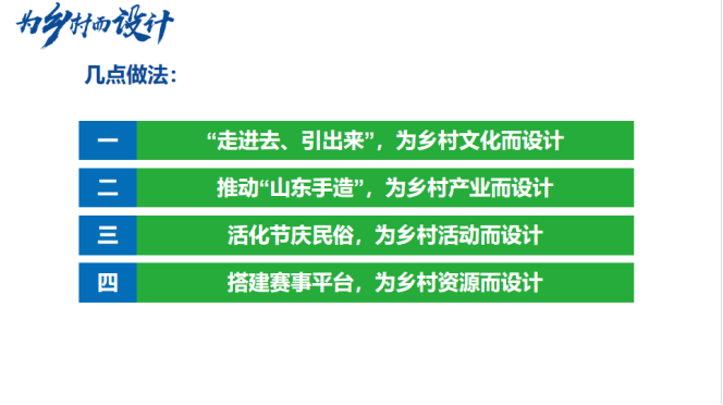 活动现场,学校《“艺术乡建”助力打造“乡村振兴齐鲁样板”》项目作为服务乡村振兴典型案例进行展览。韩文涛在“艺术让乡村更美好”论坛中发表题为《为乡村而设计》的主题演讲,介绍了威尼斯官网“为人民而设计”的办学理念,并从四个方面分享了学校在“乡村振兴、艺术乡建、乡村美育”工作中的一些做法。