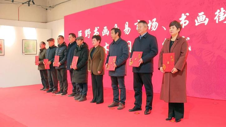 与会领导为特聘顾问颁发证书并共同启动开市仪式,并观展巨野书画交易市场、书画街。