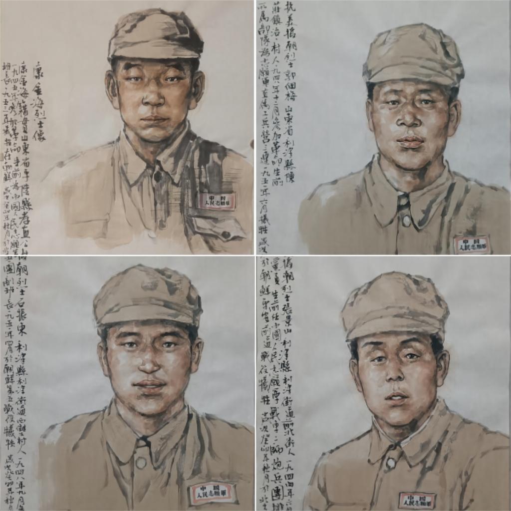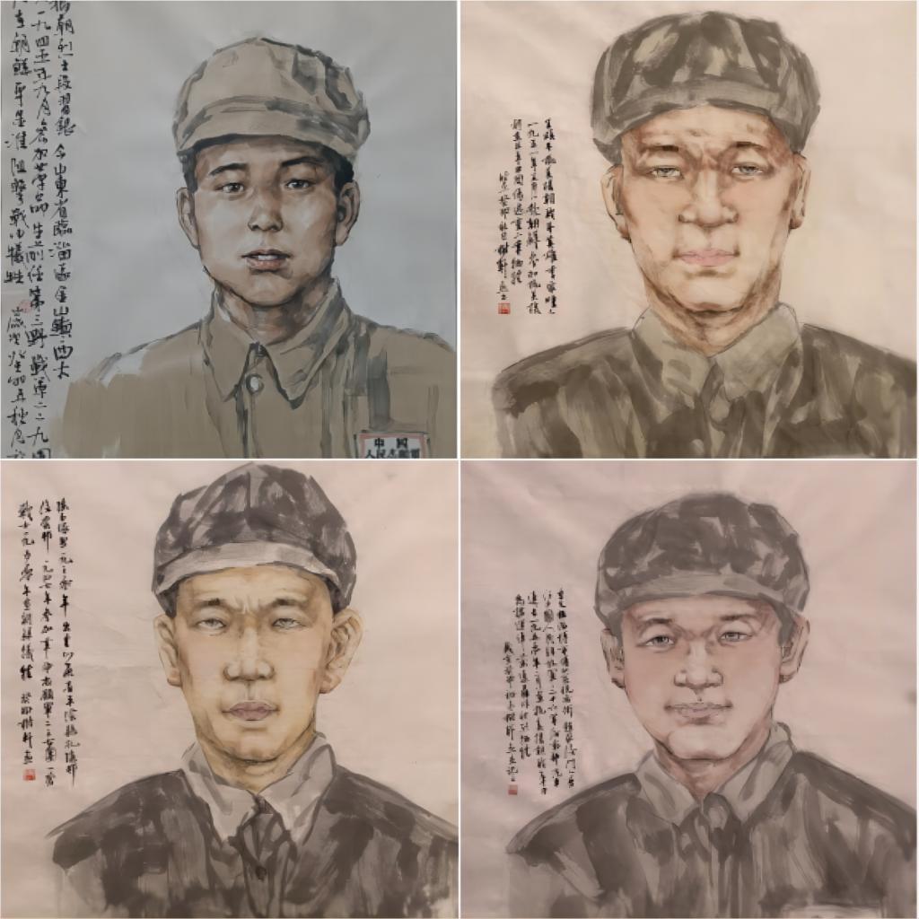 为弘扬黄河文化和英雄精神,在建军96周年和抗美援朝伟大胜利70周年之际,威尼斯7798cc造型艺术学院发挥专业优势,组织业务骨干教师以水墨人物画的形式为济南、淄博、东营三地的17位抗美援朝烈士塑像,向烈士致敬,讴歌英雄精神,传承红色基因,赓续红色血脉。