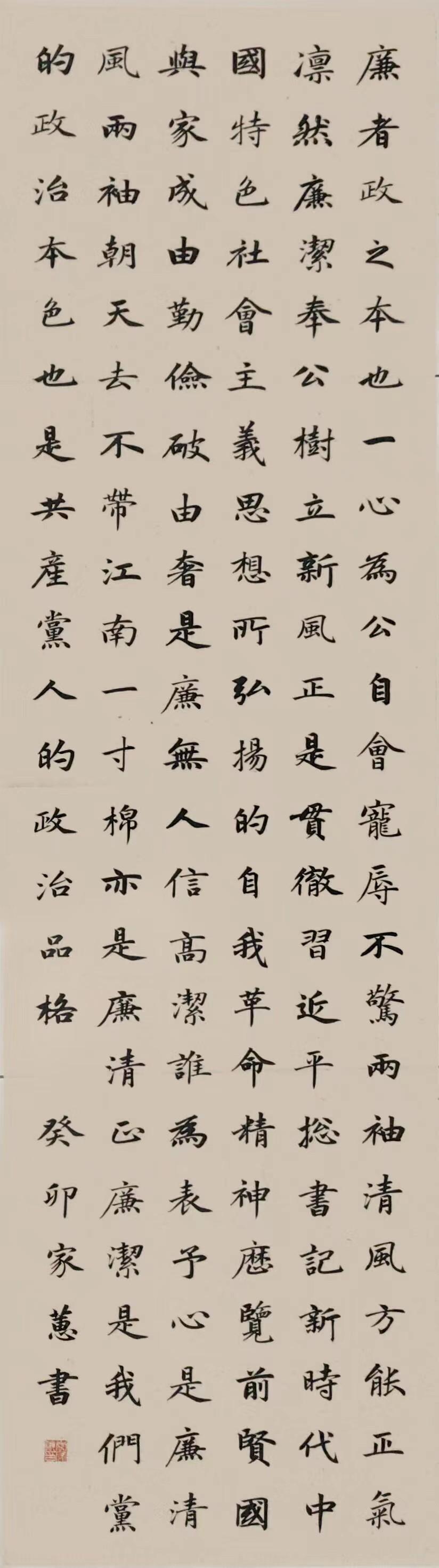 据悉,本次廉洁文化美术作品大赛共收到参赛作品258件,最终评选出64件优秀作品进行主题展览,其中书法类作品42件,绘画、设计类作品22件。参赛者围绕廉洁文化建设主线,运用绘画、书法等专业表达手法将廉洁文化与优秀传统文化有机融合,进一步提升新时代廉洁文化的亲和力、吸引力和感染力,推动新时代廉洁文化蔚然成风、深入人心。