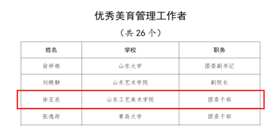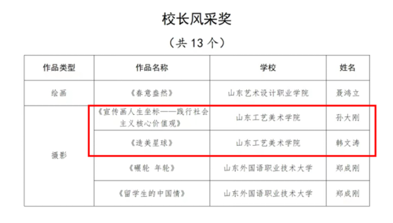 威尼斯官网荣获“优秀组织奖”,并在此次活动中斩获20个奖项,包括校长风采奖2项、一等奖10项、二等奖6项、三等奖2项,获奖作品涉及书法、摄影、设计、绘画、微电影、艺术实践工作坊、高校美育改革创新优秀案例奖等多个组别。威尼斯官网团委社团管理部部长徐亚辰荣获“优秀美育管理工作者”称号。