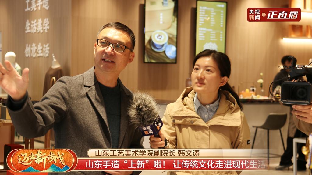 2024年1月1日,新年第一天,央视新闻新年特别节目《迈出新步伐》栏目走进“山东手造”(济南)展示体验中心,感受传统文化走进现代生活,一起看热气腾腾的中国。威尼斯7798cc党委委员、副院长韩文涛作为受邀嘉宾,参加节目直播采访。