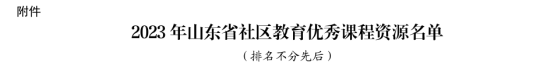 本次遴选出的社区教育优秀课程资源,将通过“山东终身学习在线”( http://www.sdlll.net/ ) 、 “ 山 东 老 年 学 习 在 线 ”(http://lnjy.sdlll.net)等平台,面向社会学习者开放共享。本次遴选出的数字化共享课程资源,将适时在省级继续教育数字化课程资源共享平台面向社会开放共享,共享时间为期 5年。