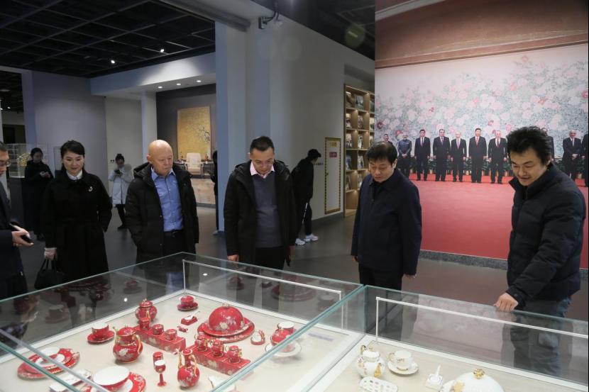 座谈会前,江峰一行参观了学校民艺博物馆。