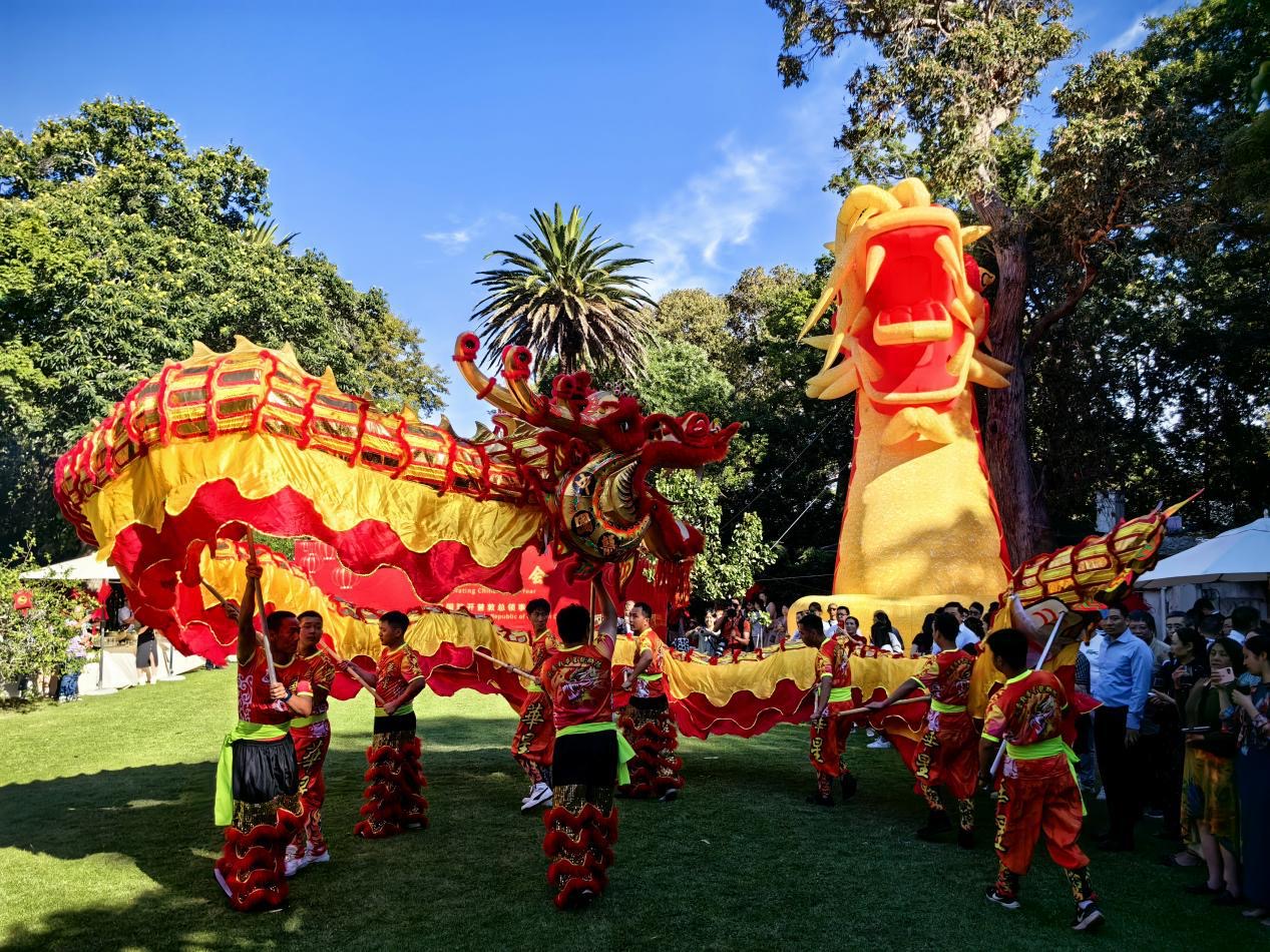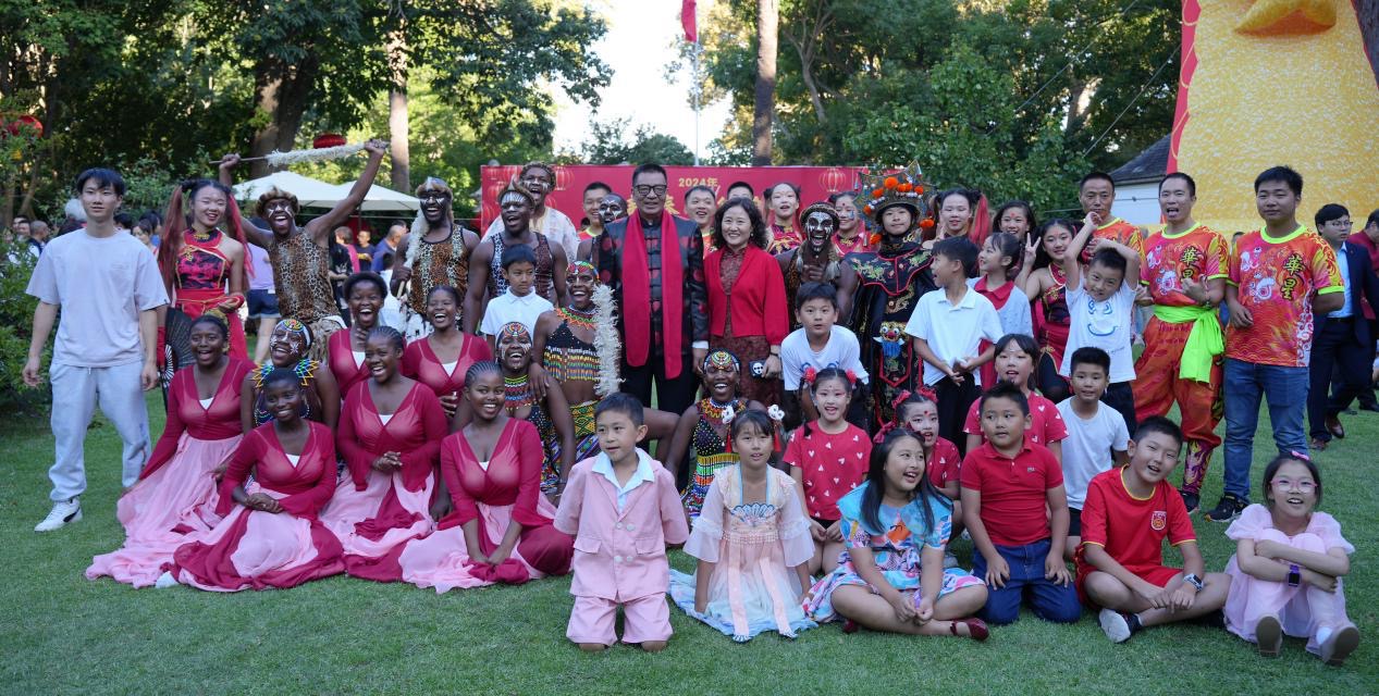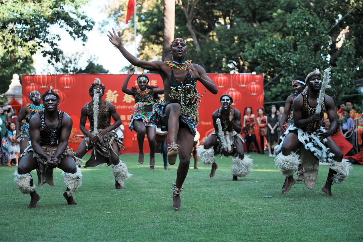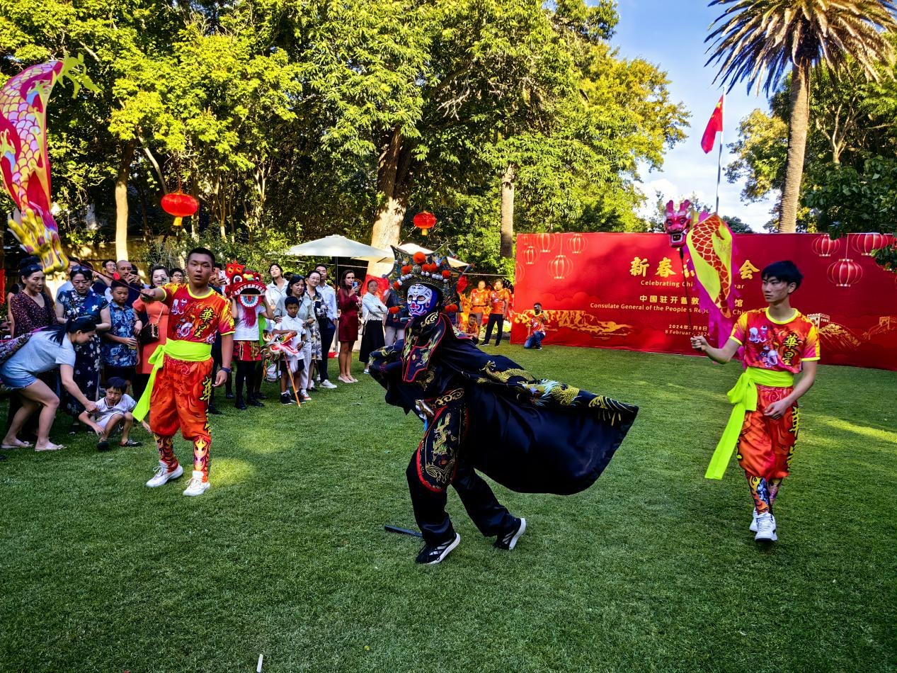 除“中国龙”全球设计展外,还有更多丰富多彩的文艺节目出现在本次新春招待会上,舞龙舞狮气势磅礴、川剧变脸神秘莫测、江南歌舞轻盈曼妙、龙的传人神采飞扬、祖鲁族舞蹈热情似火,现场掌声喝彩声不断,来宾们品尝烤羊肉串等特色美食,参与包饺子、品茶、书法等传统文化活动,一场海外春节文化全方位体验盛宴使大家感受到了浓浓的年味儿。