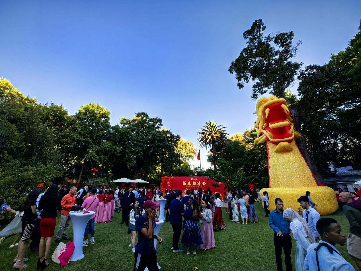 2024年是中国与南非建交26周年,在两国元首亲自引领推动下,中南关系已经步入“黄金时代”,成为发展中国家最具活力的双边关系之一。中国驻开普敦总领馆总领事尤文泽在新春招待会致辞中表示,春节是不变的文化,是深植在每个华夏儿女心中永远的根,春节又是变化的习俗,是高速发展的中国的日新月异,这些变化折射出人民节节攀升的生活水平,映照着中国经济社会的发展进步,希望大家在龙年拿出龙的干劲,焕发龙的活力,展示龙的力量,祝愿祖国发展龙腾虎跃,祝愿中南关系生龙活虎。