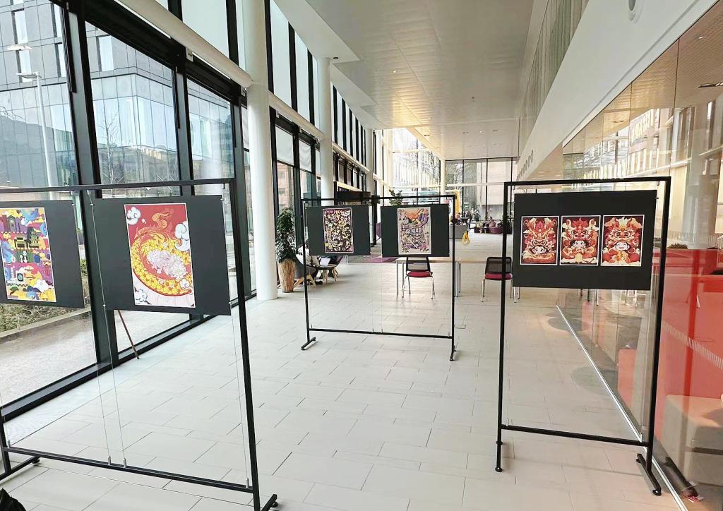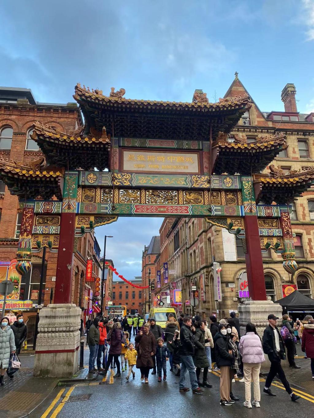 律回春渐,新元肇启。当地时间2月12日,伴随着锣鼓声,彩龙翻滚,狮子跳跃,每年一度的英国曼彻斯特传奇“龙游”在城市中心举行,一条长约50米的巨龙穿过城市的牛津街、中国城,最终到达唐人街,吸引了大批观众围观喝彩。街上熙熙攘攘,人们笑语盈盈。红灯笼、红窗花、红对联,还有身着红色汉服的人们,每一样都让人感受到中华文化的博大精深和浓浓的中国年味。与此同时,一场别开生面的“中国龙全球设计展”也在英国曼彻斯特大学商学院“龙”重登场,为英国人民献上了一场跨越地域、文化和种族的多元化视觉盛宴。