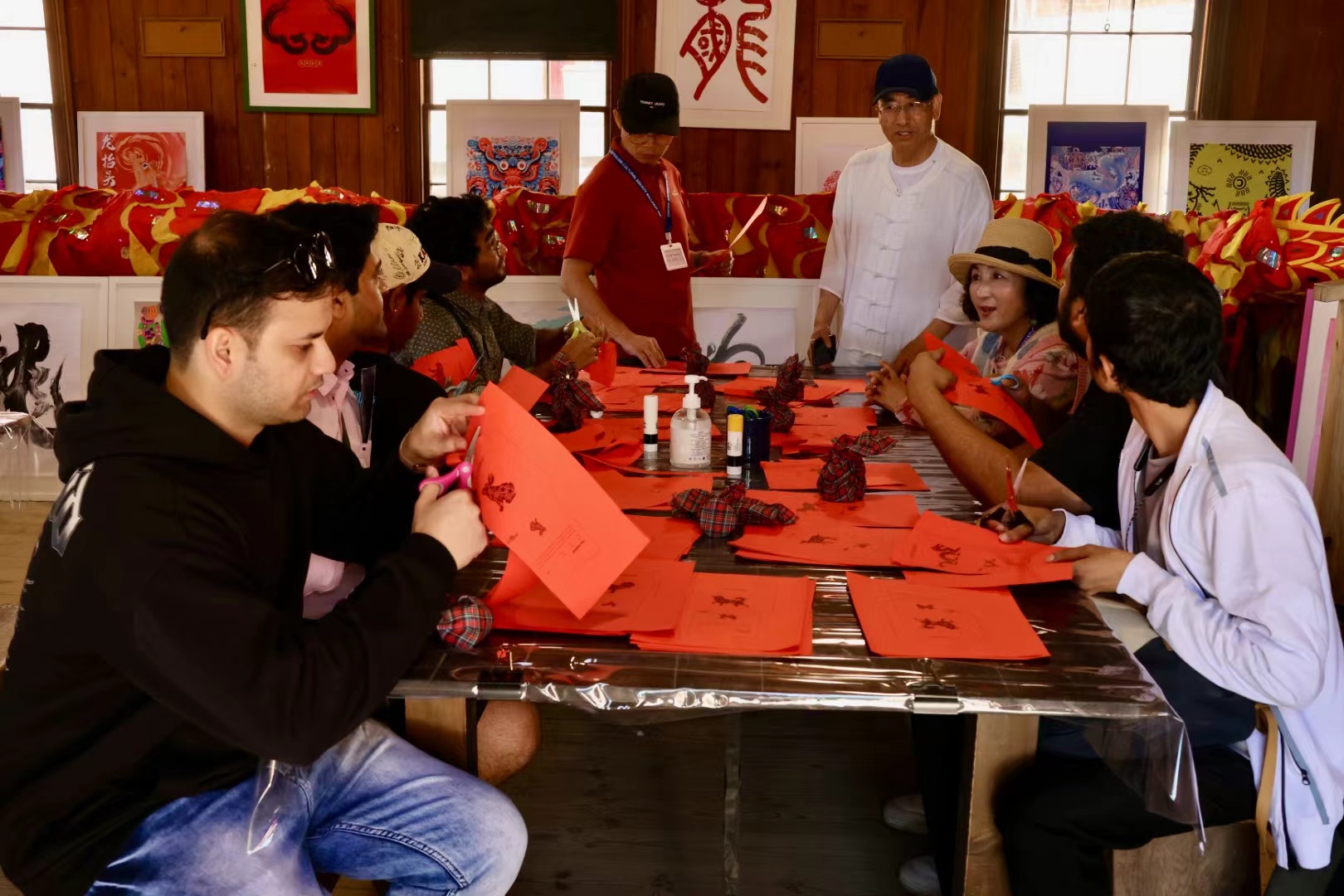 展览开幕式后,来自华人社团的志愿者还现场向参加活动的民众教起了剪纸。一张红纸、一把剪刀、剪出了千变万化的吉祥图案、新春形象和热闹美好的节日气息。参加文化体验的友人纷纷表示这是一次奇妙的新春之旅,在这里收获了美好的回忆。