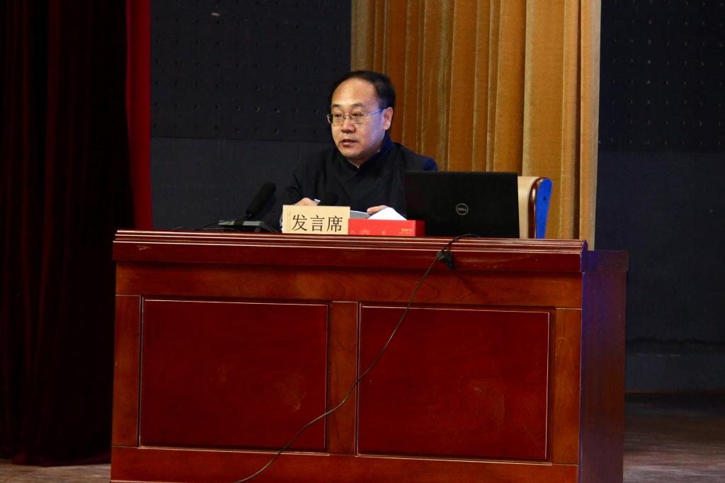 董占军讲话,从学科专业综合实力稳步提高、教育教学质量持续提升、研究生教育成果显著、科研创作水平不断增强等方面总结了“十四五”以来学校教学科研工作取得的成绩;从教学、学科专业建设、科研创作等方面深入分析了当前学校面临的挑战和机遇。