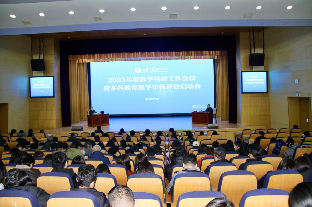 3月6日,学校在长清校区学术报告厅召开2023年度教学科研工作会议暨本科教育教学审核评估启动会,深入学习贯彻习近平总书记关于教育的重要论述,传达学习2024年全国、全省教育工作会议精神,总结“十四五”以来学校教学科研工作,分析当前形势,谋划今后学校教学科研高质量发展,迎接教育部新一轮本科教育教学审核评估。院长董占军,副院长孙大刚,副院长韩文涛,党委委员、宣传部部长孙磊,党委委员、统战部部长安峰出席会议。会议由孙大刚主持。