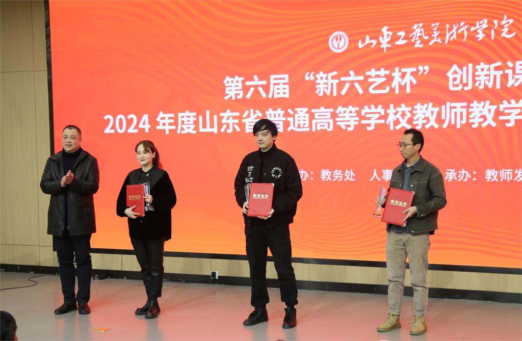 综合创新成果报告、课堂教学实录视频和现场说课三个环节的成绩,最终马克思主义学院钟晓雅、牛序茜、曹宁、吴玉鑫教学团队的课程《习近平新时代中国特色社会主义思想概论》获得一等奖;建筑与景观设计学院纪薇老师,视觉传达设计学院张瑞、张培源、赵志云、王雪教学团队的课程《传统与现代空间转译》《专题设计》获得二等奖;数字艺术与传媒学院田阔、张光帅、牟堂娟、李杨教学团队,数字艺术与传媒学院张牧、田金良、牟堂娟、李杨教学团队,造型艺术学院杨勇智、周胜楠、张樾教学团队的课程《游戏UI设计》《AIGC智能生成艺术》《陶瓷艺术》获得三等奖。
