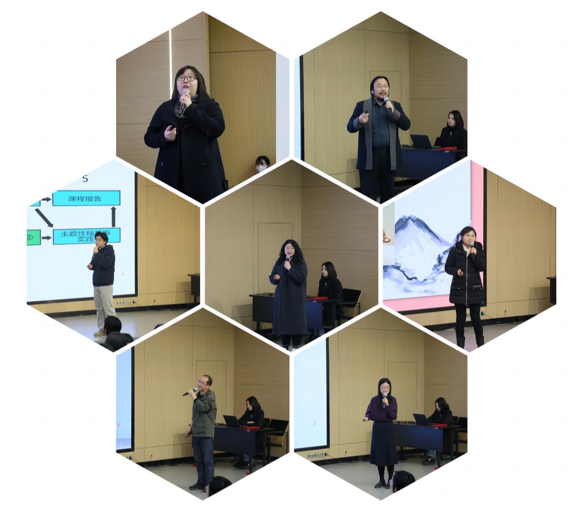 应用设计学院陈静老师,工业设计学院王俊涛老师,现代手工艺术学院俞杰星老师,建筑与景观设计学院张春单老师,人文艺术学院彭文雅老师,造型艺术学院杨勇智老师,建筑与景观设计学院纪薇老师,数字艺术与传媒学院程思远老师,数字艺术与传媒学院张牧老师、数字艺术与传媒学院田阔老师,产教融合青岛基地甄晶莹老师,马克思主义学院钟晓雅老师,造型艺术学院渠国强老师,视觉传达设计学院张瑞老师先后对《传统木作》《文创产品设计》《陶瓷釉色应用与研究》《建筑设计1》《艺术的起源和功能》《陶瓷艺术》《传统与现代空间转译》《影视剧本创作》《AIGC智能生成艺术》《游戏UI设计》《影视特效》《习近平新时代中国特色社会主义思想概论》《山水创作》《专题设计》14门课程的教学创新思路进行现场讲解。现场说课结束后,评委代表何文晶、徐思民对参赛课程作精彩点评。