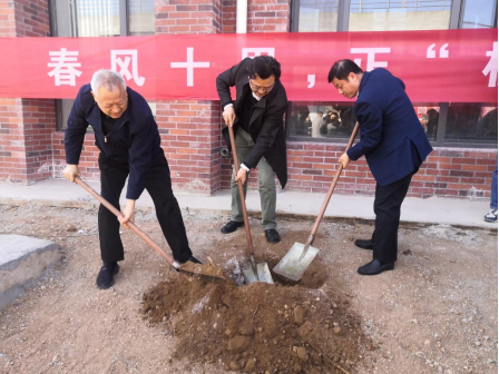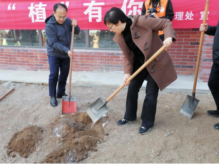 活动伊始,董占军与校友代表解磊一起为认养树木进行挂牌,随后解磊、学生代表季钰旸、教职工代表赵丽莎依次发言,表达了植树造林、绿化校园、爱校如家的美好情怀。最后,王晓娟宣布2024年植树活动正式开始!