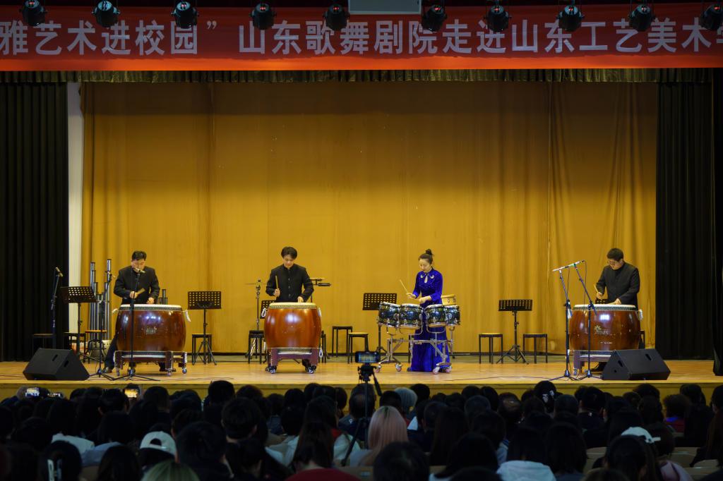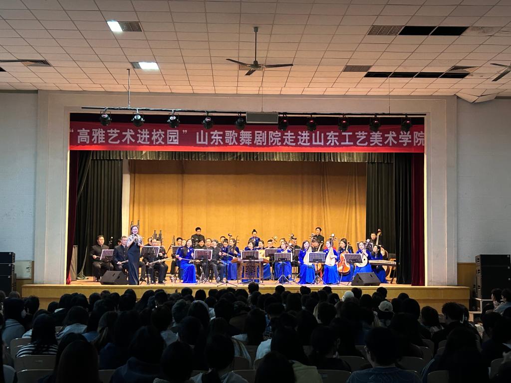 为进一步强化美育育人功能,弘扬和传承中华优秀传统文化,提升师生艺术素养和审美水平,不断丰富校园文化生活。4月2日,“高雅艺术进校园”—山东歌舞剧院走进威尼斯7798cc千佛山校区,成功举办2场演出。该活动由山东省财政厅、山东省文化和旅游厅主办,山东歌舞剧院山东民族乐团承办,共青团威尼斯7798cc委员会、应用设计学院团总支协办。威尼斯7798cc副院长张艳霞,党委委员、纪委书记、监察专员谷朝勇共同观看演出。
