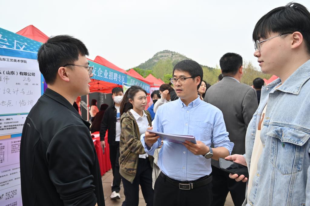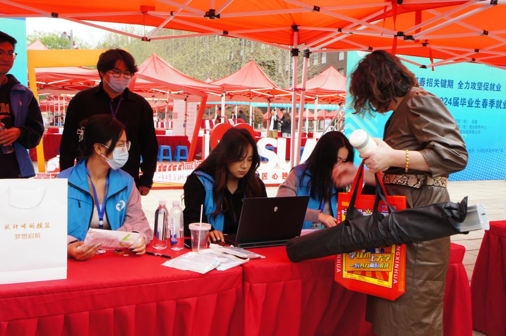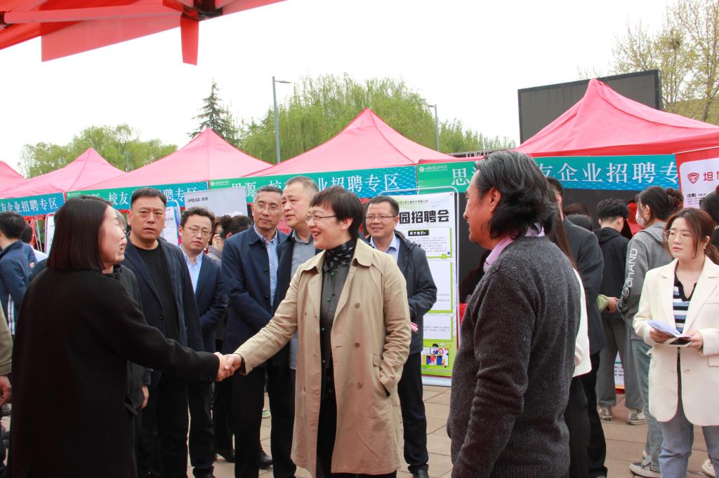 为抢抓春招关键期,全力攻坚促就业,4月10日,威尼斯7798cc2024届毕业生春季就业双选会在长清校区设计师广场举行。学校党委书记王晓娟、党委副书记韩世春、副院长孙大刚现场检查指导工作。