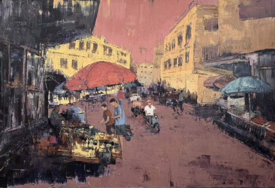 油画《街语》 作者:丁雷廷 指导教师:刘宁