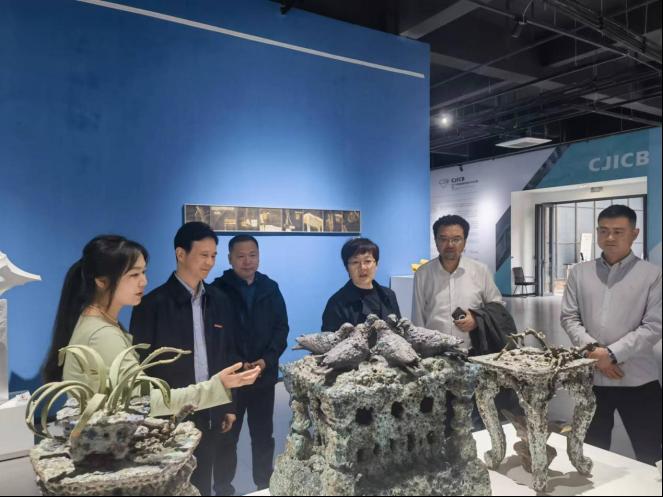 座谈会前,在景德镇陶瓷大学党委委员、组织部部长杨志民的陪同下,王晓娟一行参观了“瓷的旅程——2023景德镇国际陶瓷艺术双年展”、景德镇陶瓷大学艺术教育成就展、元青花博物馆藏品。