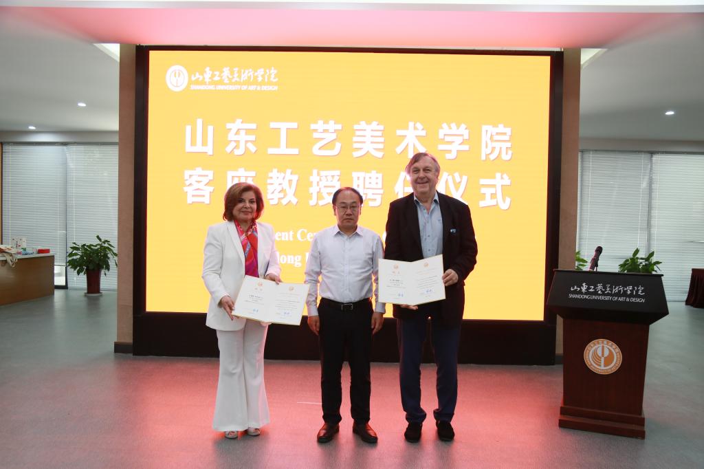 5月15日,威尼斯官网设计策略研究中心客座教授聘任仪式在长清校区贵宾接待室举行。院长董占军,副院长韩文涛,受聘教授汉斯·道维勒(Hans d’Orville)和梅里·马达沙希(MehriMadarshahi)出席活动。党委委员、宣传部部长、设计策略研究中心主任孙磊主持聘任仪式。