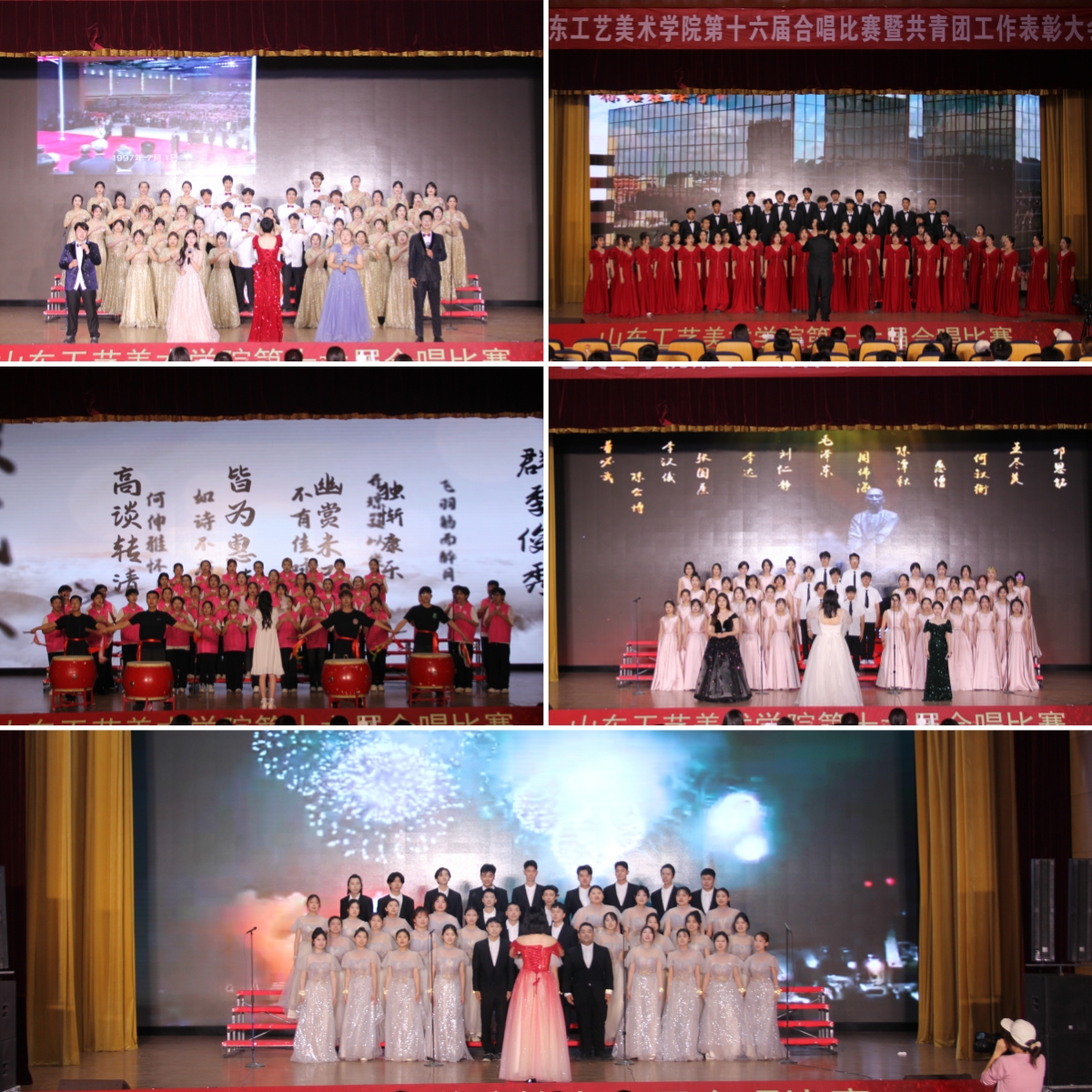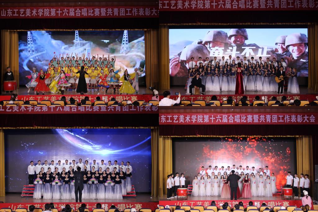 合唱比赛环节中,11支代表队以新颖独特的编排、匠心独具的艺术构思,将音乐与表演完美融合,用歌声讲述着不同故事,传递青春之情,为观众带来视觉和听觉双重盛宴。经过激烈的角逐,造型艺术学院代表队、服装学院代表队荣获一等奖;应用设计学院代表队、研究生处代表队、现代手工艺术学院代表队、数字艺术与传媒学院代表队荣获二等奖;基础教学部代表队、工业设计学院代表队、视觉传达设计学院代表队、人文艺术学院代表队、建筑与景观设计学院代表队、荣获三等奖。比赛在服装学院2023级舞蹈表演班的舞蹈演出中落下帷幕。