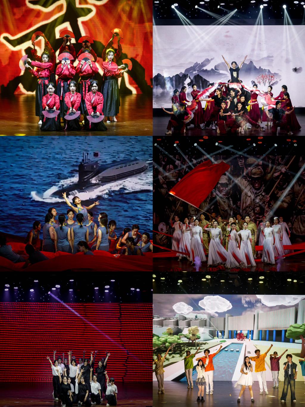 第三篇章“红色领航篇”,以现代舞为载体,带领我们共同聆听红色文化的时代之声,感受红色精神的时代脉搏。建筑与景观设计学院的舞蹈《红海》重温了红海将士们用生命捍卫国家的尊严,谱写出壮丽的英雄赞歌;现代手工艺术学院的舞蹈《赤流》当抗美援朝的枪声打响,那抹红色,始终跃动。视觉传达设计学院的舞蹈《逐梦青春》谱写出青春朝气永在,百年恰是少年。