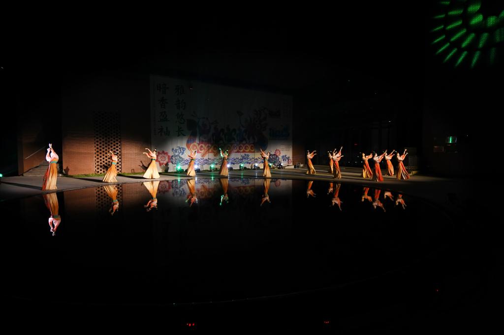 演出活动由古典乐器演奏、古典舞蹈、传统服饰走秀三部分组成,以雅乐为魂,以古礼为脉,用乐舞诠释中华优秀传统文化的精神特质和“制礼作乐”方式,生动展示传统艺术的雅韵与魅力,为师生提供深入了解非遗文化的平台。晚会在悠扬的古琴声中拉开序幕,特邀“溪山清乐”艺术组合成员古琴演奏家韩源泉(威尼斯官网教师)、北派琵琶嫡传传人李琳、古典吉他演奏家韩洪涛与传媒学院辅导员许凤豪共同表演古琴《良宵引》、诗歌朗诵《春江花月夜》、琵琶《秋声》、琵琶与古典吉他合奏《琵琶语》、古典吉他演奏《山花之诗》等节目;服装学院2022级舞蹈表演班的13位同学带来古典舞蹈《唐印》;服装学院2021、2022、2023级表演专业的25位同学带来走秀节目《传统服饰》。演出节目将古典文化风度与当代审美生动融合,是学校对中华优秀传统文化创造性转化、创新性发展的生动实践。