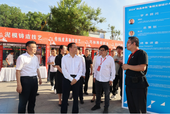 董占军还参观了正在举行的首届全国鲁班文创设计大赛作品展,并接受媒体参访。