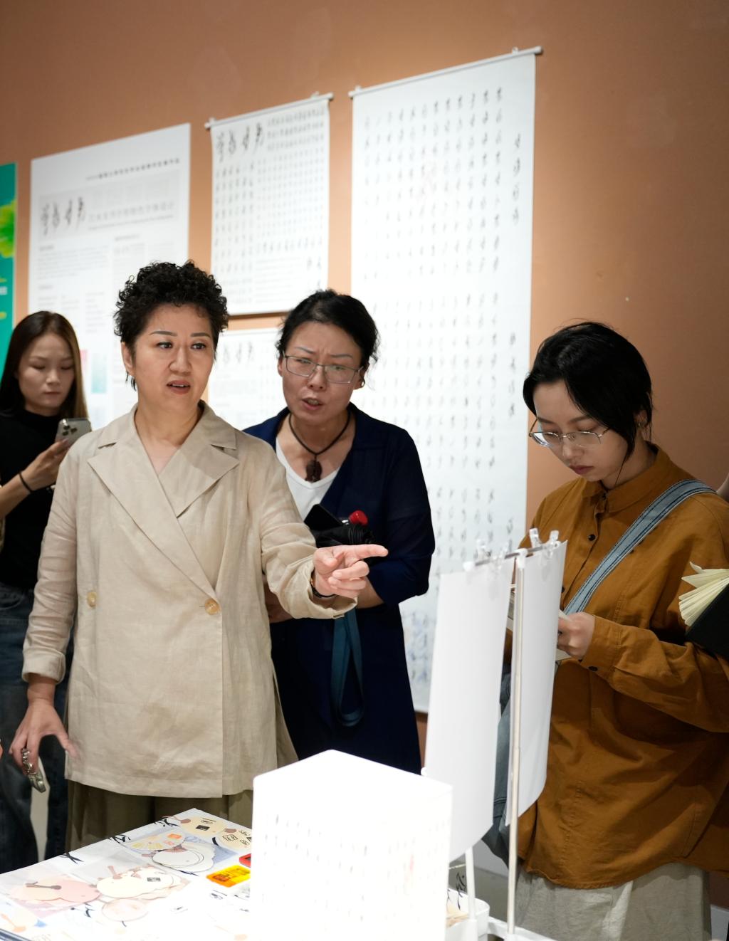 研究生处处长赵屹:本届毕业生综合素质全面,在校期间刻苦学习专业知识,积极参加学术科研和创新实践活动,在导师指导下参与、完成学校重大社会服务项目和重点建设任务,具备扎实的专业基础和创意创新能力。他们紧跟数字时代步伐,善于运用数字化手段解决实际问题,敢于跳出传统思维框架,展现出对生活与艺术、功能与美的深入探索。与以往毕业生相比,本届研究生的作品愈发体现出新时代的鲜明特色,在创作主题上清晰的表达出对黄河国家重大战略和绿色低碳高质量发展的呼应,在作品形式上展现出对中华优秀传统文化的创造性转化、创新性发展以及对非物质文化遗产保护的继承和出新,在创作手法上,对新材料、新技术的利用更加多元,数字化、影像化的作品越来越丰富。本届研究生毕业作品中近90%的选题来源于传统主题、传统图案和纹样,在专业创作中也充分体现出当代年轻人的审美取向,传递出对现实问题的深入观察、思考和解决方案。