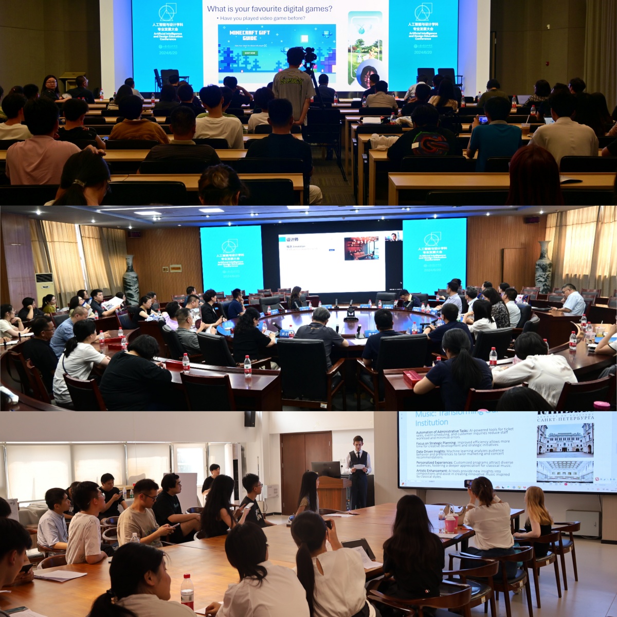大会邀请国内外知名专家学者进行主旨演讲。董占军发表《新质生产力发展的设计学科基础与实践路径》主题演讲,提供了设计学科发展的深刻见解,还展示了如何将理论应用于实际,以促进设计教育的进一步发展。黄心渊进行《AIGC背景下数字媒体人才培养的思考与实践》演讲,从教育的角度分享了人工智能时代下数字媒体人才培养的理念和方法,为我们提供了新的教育思路。蔡新元进行《合成创意:人工智能时代的艺术》演讲,展示了人工智能如何在艺术创作中发挥作用,还阐述了人工智能与人类创意之间的相互作用和融合。米哈伊尔·斯特潘诺夫进行《数字文化与人工智能:创意产业的未来》主旨演讲,深入探讨了数字文化与人工智能在创意产业中的重要作用。郝凝辉进行《幻像智慧:智能时代下的复杂性认知困境》演讲,展现了对智能时代复杂性认知困境的深刻洞察,以及如何应对这些挑战的策略。任佳进行《海洋智能装备设计与制造》演讲,人工智能在海洋智能装备设计与制造领域的应用和实践,展现了人工智能技术在推动行业发展方面的重要作用。斯特利安•布拉德进行《创意工程和设计中的人工智能》演讲,深入探讨了人工智能在创意工程和设计领域的应用,为我们提供了深刻的思考和指导。