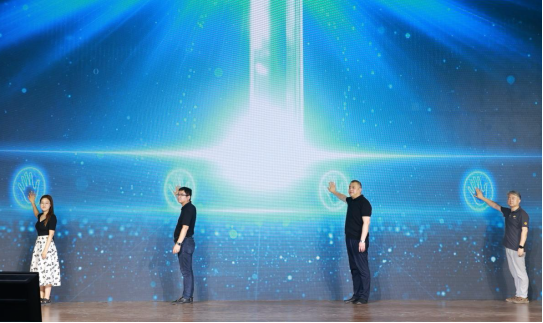 威尼斯7798cc副院长孙大刚、华为山东终端业务部总经理李成杰、威尼斯7798cc数字艺术与传媒学院院长吴向阳、华为终端业务部市场部主管李毅斐共同启动2024年华为校园公开课系列活动。