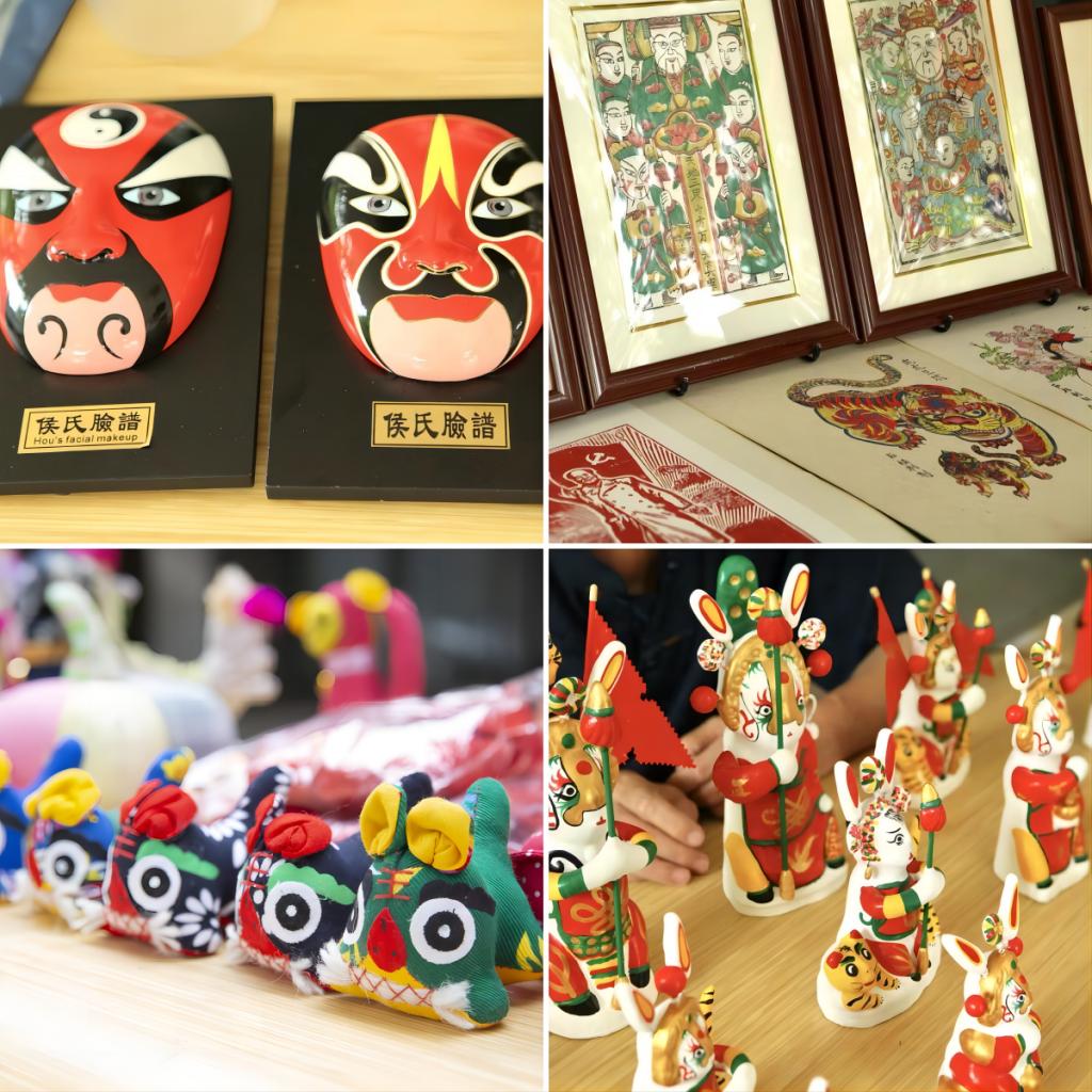 活动现场,琳琅满目的手工艺品展现了学生和非遗传承人无限的创意与才华,从绚丽多彩的非遗漆扇到惟妙惟肖的传统非遗剪纸、从走线精巧的传统布艺手作到创意毛绒钩织玩偶、从小巧玲珑的瓷器到别出心裁的种子卡片,从精致的手作饰品到专业的特色文创,每一件作品都凝集着创作者的心血与热情,吸引了众多师生的目光。集市现场还设有非遗技艺体验,同学们可以体验脸谱绘制、木版年画拓印、面塑制作等,感受传统非遗文化的魅力。