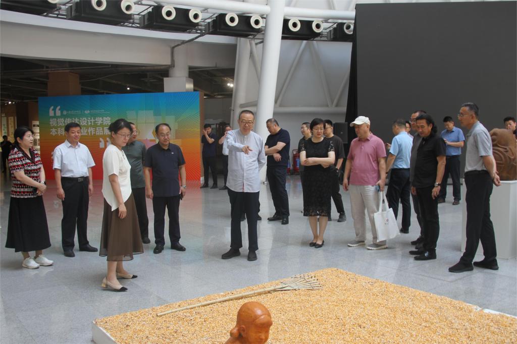 6月25日上午,名誉院长潘鲁生,学校领导王晓娟、董占军、韩世春、张艳霞、孙大刚、谷朝勇参观指导2024设计艺术博览会暨本科生毕业作品展。