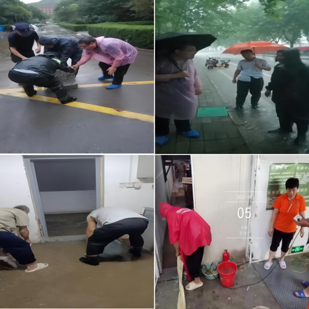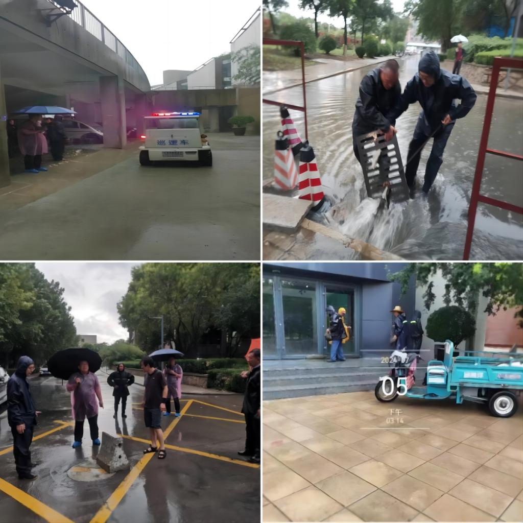 两部门联合成立防汛应急工作小分队,迅速开展防汛物资清点、防汛排涝设备检查、井口防护设施运送工作,组织当日值班人员到位进行演练。各科室(中心)全面排查险情,关注供水供电重点部位,并根据检查情况部署防御,重点检查雨水排水设施,确保排水顺畅。安排专人值班,加强巡逻,定时定点察看责任区域,对学校重点防汛部位重点观测,开展现场检查。物业部门对易进水的漏雨出入口进行沙袋防护。两部门主要负责人亲自带队检查,实施24小时防汛值班和定时巡查,确保做到及时发现险情,及时消除隐患,全力做好学校校园防汛抗洪工作和后勤服务保障工作。