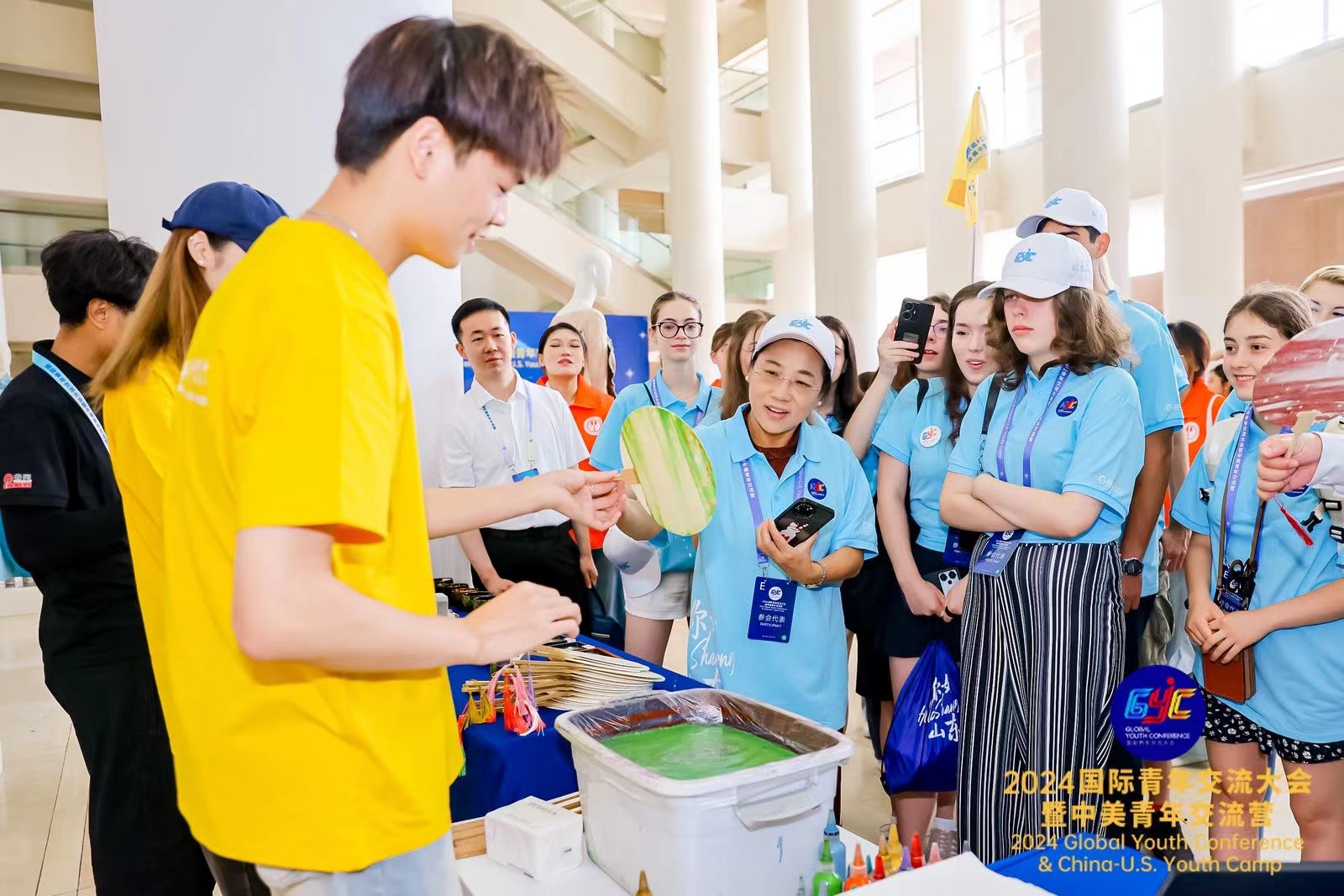来自美国、法国、罗马尼亚等欧亚非国家约500位青年朋友们纷纷驻足观看并亲自参与现场设置的非遗互动体验,他们亲手尝试漆扇、书法、拓印等传统技艺,认为无论是漆扇的细腻工艺,书法的笔墨韵味,还是拓印的精准复制,都体现了深厚的功底和细致的匠心,切实感受到了这些非遗文化所带来的美好体验和情感共鸣。