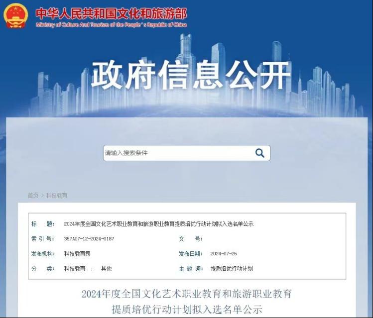 “2024年全国文化艺术职业教育和旅游职业教育提质培优行动计划”是文化和旅游部设立的部级行业人才培养专项。该项目旨在贯彻落实中共中央办公厅、国务院办公厅《关于深化现代职业教育体系建设改革的意见》,重点推动文化艺术职业教育和旅游职业教育深化产教融合、校企合作,强化院校整体的行业产业实践创新能力和职业岗位技术技能培养能力,提高行业人才培养适应性和技术技能水平,该计划包含学生实践引领计划、“双师型”教师创新发展计划和专业研究生科研攻关计划三类项目。