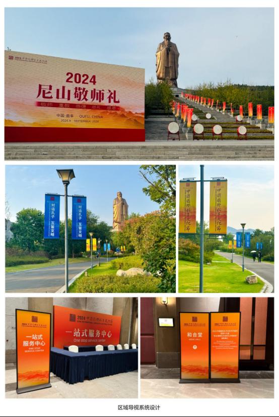 孔子文化节作为践行全球文明倡议、深化文明交流互鉴的有效载体,在推动世界文明对话、增进各国人民友谊等方面发挥着越来越积极的作用。接到设计任务后,学校高度重视,迅速成立以副院长孙大刚教授为项目总指挥、苗登宇教授为艺术指导的工作团队,成员包括工业设计学院教师唐郁明、张微子,西安美术学院博士研究生芦佃杰以及学校研究生李孜怡、程泽凤、邱思贤。在近两个月时间里,工作团队全力以赴投入集中创作与深化完善设计方案的工作,不断探索创新,先后完成十余套系列设计方案,每一套都经过精心构思和反复打磨,从不同角度生动展现孔子文化的丰富内涵和独特魅力。最终,经过不懈努力,团队成功完成文化节主视觉设计、办公用品系统设计、区域导视系统设计、城市户外氛围设计等多个方面工作,这些设计方案相互呼应、相得益彰,全面构建起本次“中国国际孔子文化节”的整体视觉形象体系,全力追求视觉盛宴与文化礼赞的精妙融合,通过设计细节充分展现中华民族文化的独特魅力与深远影响力。