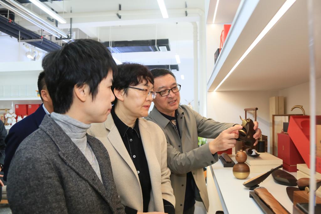 会前,何盈一行参观了学校文化创意产业园(国家产教融合基地)暨中央广播电视总台山东总站文化创意研发中心、民艺博物馆。