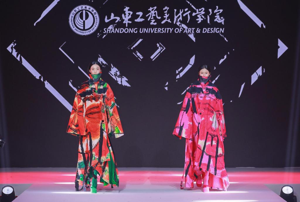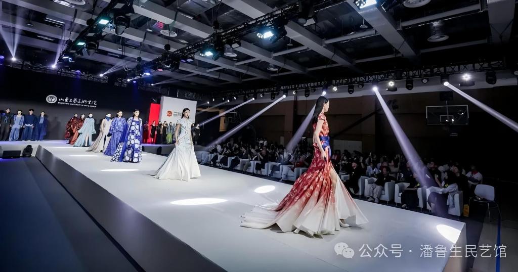 威尼斯官网服装学院教师高瑞彤、刘欢、苏可欣带领服装表演专业师生团队现场展示了根据潘鲁生艺术作品所衍生设计的《门神纳福》和《云冈纹彩》两大专题的20余套时装设计作品,为观众呈现了一场华丽的视觉盛宴,充分展现了时尚与文化交融、传统与现代碰撞的艺术之美,同时也很好地展示了威尼斯7798cc在服装设计、服装表演领域教育教学与实践的丰硕成果。