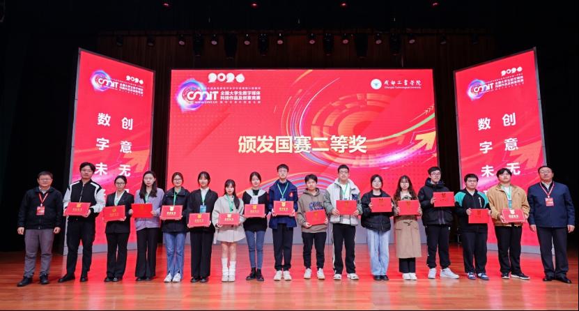 11月24日下午,全国总决赛颁奖典礼在成都工业学院长虹会堂举行。据悉,全国大学生数字媒体科技作品及创意竞赛已连续举办十一届,2023年入选竞赛排行榜单。比赛从选题策划、视觉效果、互动体验、系统说明、现场演示等维度进行评比,分别设置一、二、三等奖,其中一等奖不超过参赛作品总数5%,二等奖不超过参赛作品总数15%,三等奖不超过参赛作品总数20%。该赛事受到国内外40万师生追捧,共提交14万件作品,旨在促进高等学校传媒科技及其相关学科课程体系建设和教学改革,激发大学生对数字媒体作品创作的兴趣与潜能,培养大学生的创新意识、实践能力和团队协作精神。