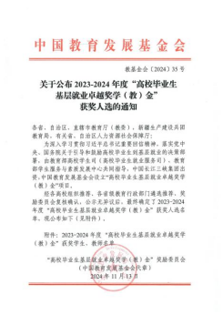 该奖项旨在深入学习贯彻习近平总书记重要回信精神,落实党中央、国务院关于引导和鼓励高校毕业生到基层就业的决策部署,奖励对象为赴基层就业并做出突出业绩的普通高校毕业生和普通高校指导服务大学生赴基层就业工作有突出贡献的教师。2023-2024年度,“高校毕业生基层就业卓越奖学(教)金”奖励优秀高校毕业生398名、优秀指导教师60名。