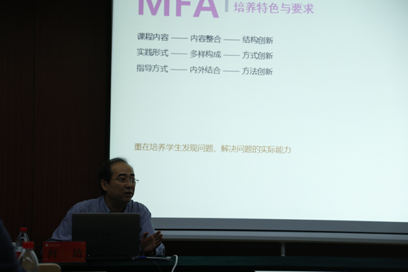 何洁教授立足艺术专业学位艺术设计领域硕士研究生培养的主题,围绕艺术硕士培养特色与要求、毕业考核、人才培养等方面,结合课程设置、实践训练、指导方式、专业能力展示、论文综合训练、实验实践体系构建、质量监控等具体环节,从政策、技术及学术层面深刻诠释了他对艺术硕士教育的思考。