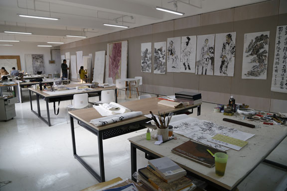 考虑到研究生学习的特殊性,为更好地服务于研究生群体,实现教学与科研相结合,研究生处前期经过广泛调研、多方论证、规划和调整设计方案,最终经学校招标完成主体空间改造工程,相关配套桌椅等设施也已基本到位。目前共建成11个工作室,供中国画、油画、书法、雕塑、视觉传达设计、环境艺术设计以及理论类等学科方向研究生使用,工作室配备专业图书资料、无线局域网络,集设计创作与作品展示于一体。